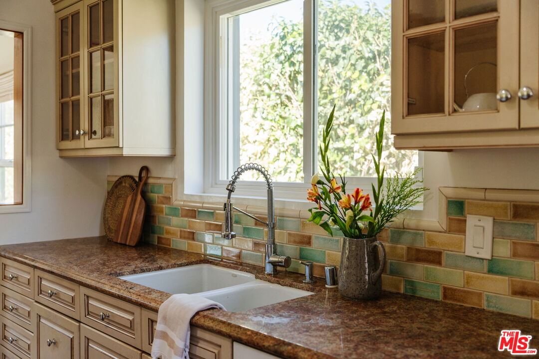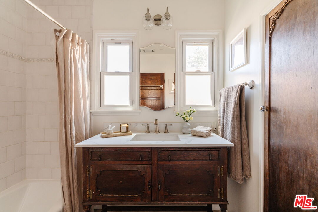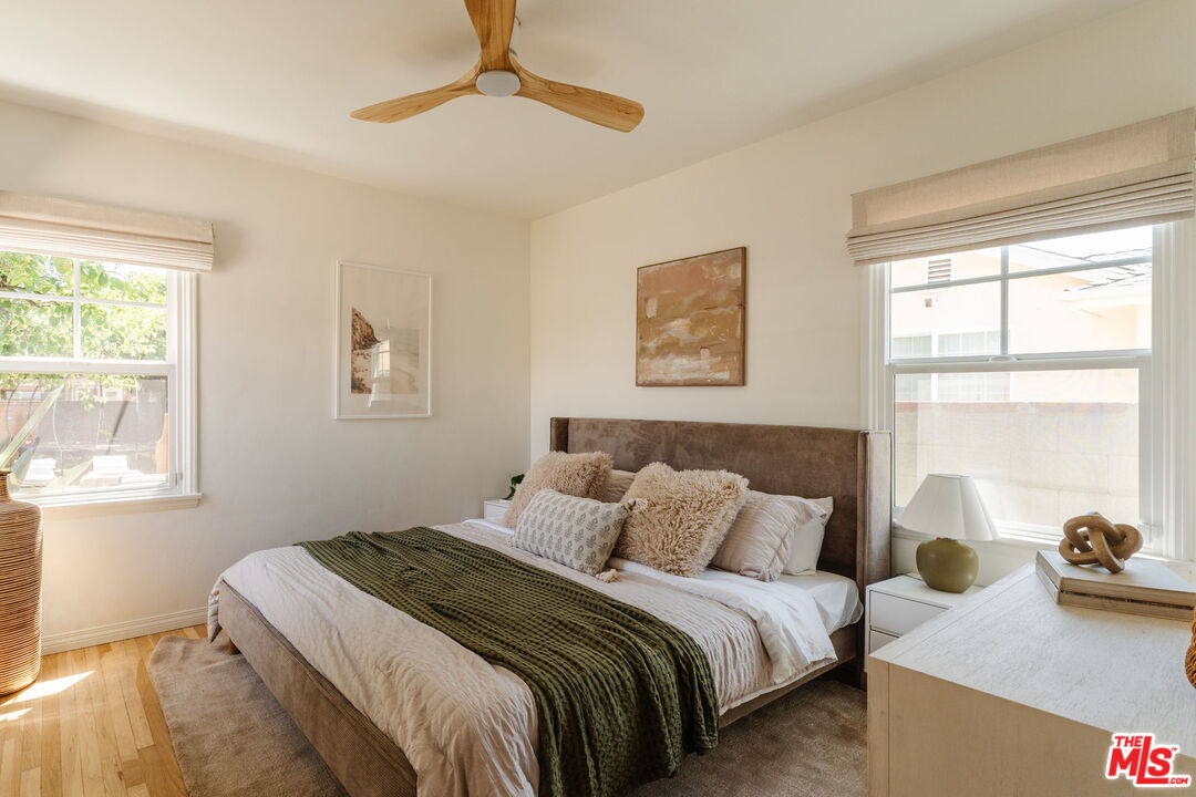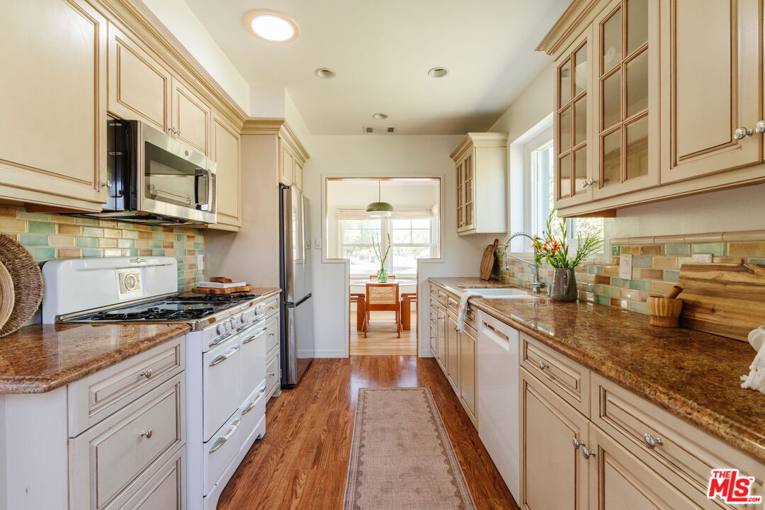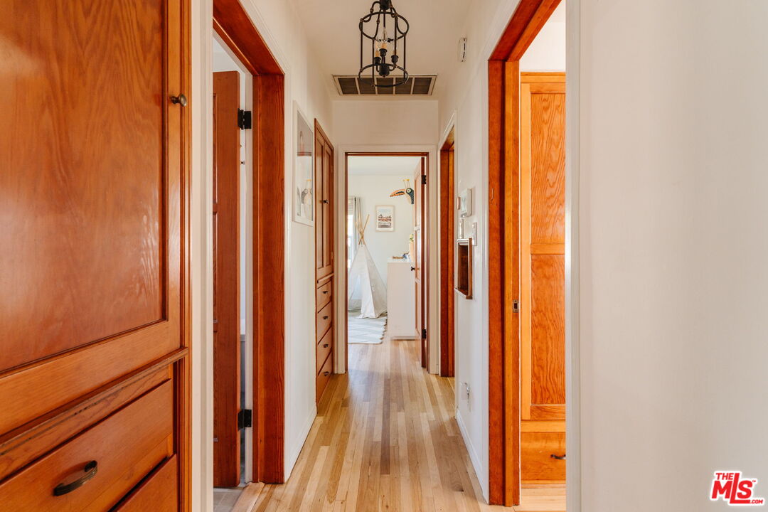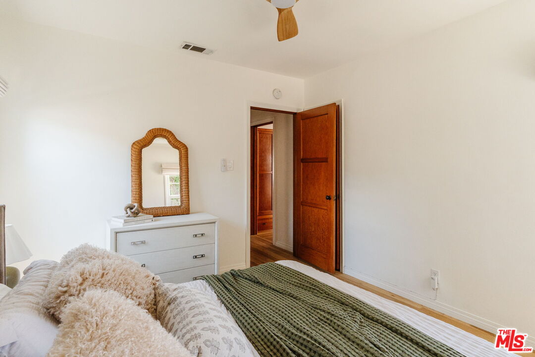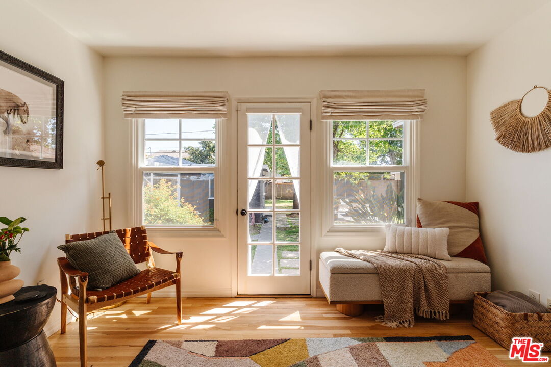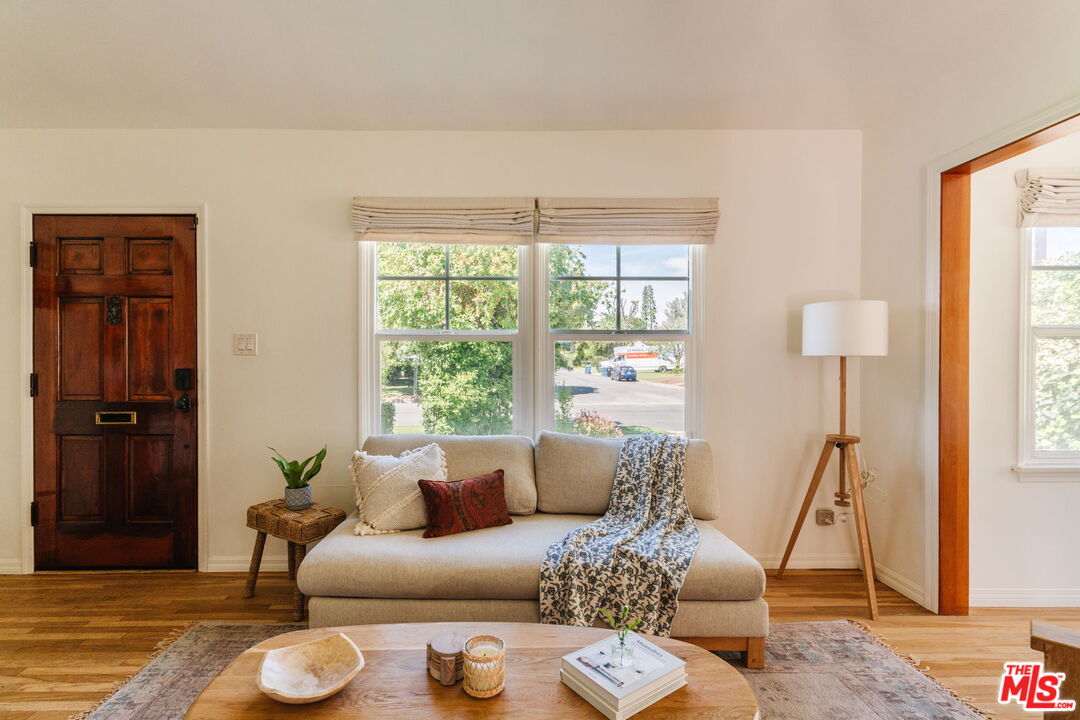 Tucked away on a peaceful street in one of Valley Glen's most desirable pockets, this move-in ready 1939 cottage blends classic charm with modern updates. The main house features 2 bedrooms and 1 full bathroom, plus a flexible office/bedroom with French doors that open to a generously sized backyard. Sunlit living and dining rooms offer a peek of the mountains, while the updated kitchen feels timeless. 1930s details - coved ceilings and original, newly refinished hardwood floors pair beautifully with modern upgrades including EV charging, brand new refrigerator & microwave, central heat/air, double-paned windows, and a remodeled bathroom. The standout feature is a garage conversion with a bathroom and kitchenette - perfect as a guest suite, home gym, recording, or creative studio. The fully fenced backyard is a private retreat with endless possibilities to make it your own. It's adorned with fruit trees, patios, a dining area, fire pit, and plenty of space for outdoor living, additional structures, and plenty of room for a pool. Off-street parking is provided by a generously-sized driveway equipped with EV charging. Don't miss this chance to own a move-in ready cottage that mixes old-world charm with modern comfort - ideal for indoor/outdoor living or a creative setup.