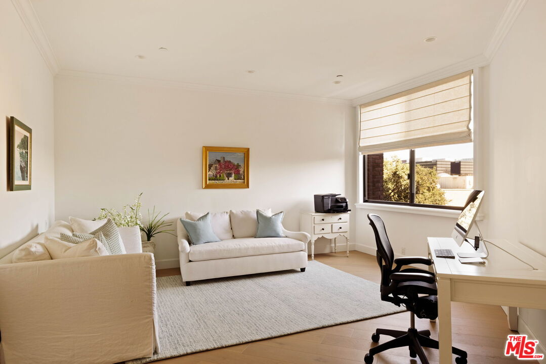 Welcome to Unit 354, now Priced to Sell! A meticulously renovated 2-bedroom + den/office/media room at the iconic IV Seasons Condominiums in the heart of Beverly Hills. Enjoy the ultimate in luxury and convenience with 24/7 doormen, valet parking, and access to the building's pool, gym, and spa, all complemented by proximity to Beverly Hills' renowned schools, restaurants, and designer shops on Rodeo Drive, as well as Whole Foods and Erewhon. This sun-filled, southeast-facing residence was fully renovated in 2022, creating a completely turn-key experience. A grand foyer sets an impressive tone upon entry, with wide-plank wood floors leading into a dramatic living room featuring high ceilings, exposed beams, a fireplace, and sliding doors to a tranquil private patio, perfect for entertaining or relaxing in privacy. The dining area comfortably seats eight and flows seamlessly into a sun-flooded eat-in kitchen equipped with premium Wolf and Bosch appliances. The den/office offers flexible space for a home office, guest room, or media room, while the second bedroom features an ensuite bath and abundant natural light. The primary suite, occupying a private wing at the end of a hallway lined with closets, is a serene retreat. Its spa-like ensuite bathroom includes double vanities, a built-in dressing table, a freestanding soaking tub, and an oversized shower. Boasting one of the building's most spacious layouts, this elegant unit combines sophisticated design, modern upgrades, and a prime Beverly Hills location. A rare opportunity for refined living at the IV Seasons.