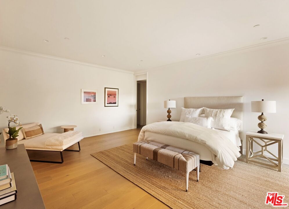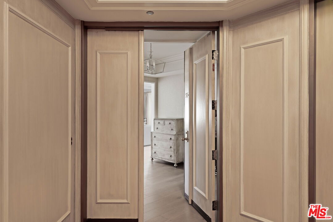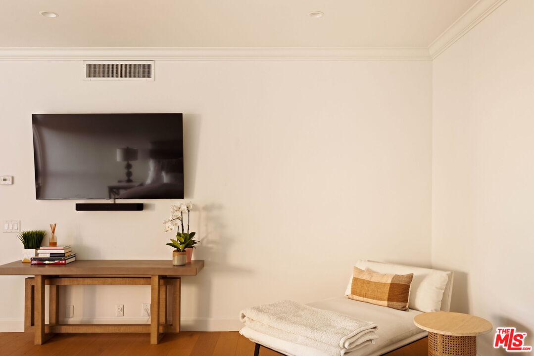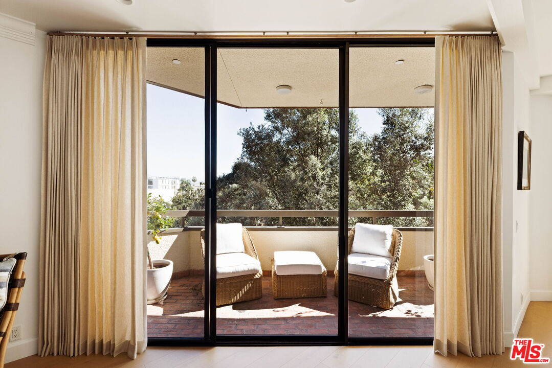 Welcome to Unit 354, a meticulously renovated 2-bedroom + den/office/media room at the iconic IV Seasons Condominiums in the heart of Beverly Hills. Enjoy the ultimate in luxury and convenience with 24/7 doormen, valet parking, and access to the building's pool, gym, and spa, all complemented by proximity to Beverly Hills' renowned schools, restaurants, and designer shops on Rodeo Drive, as well as Whole Foods and Erewhon. This sun-filled, southeast-facing residence was fully renovated in 2022, creating a completely turn-key experience. A grand foyer sets an impressive tone upon entry, with wide-plank wood floors leading into a dramatic living room featuring high ceilings, exposed beams, a fireplace, and sliding doors to a tranquil private patio, perfect for entertaining or relaxing in privacy. The dining area comfortably seats eight and flows seamlessly into a sun-flooded eat-in kitchen equipped with premium Wolf and Bosch appliances. The den/office offers flexible space for a home office, guest room, or media room, while the second bedroom features an ensuite bath and abundant natural light. The primary suite, occupying a private wing at the end of a hallway lined with closets, is a serene retreat. Its spa-like ensuite bathroom includes double vanities, a built-in dressing table, a freestanding soaking tub, and an oversized shower. Boasting one of the building's most spacious layouts, this elegant unit combines sophisticated design, modern upgrades, and a prime Beverly Hills location. A rare opportunity for refined living at the IV Seasons.