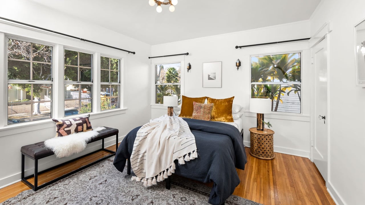 Come home to this charismatic Spanish style home situated on a tree-lined street in historic Windsor Village. With an open floor plan, high ceilings, refinished original hardwood floors, and oversized windows, you immediately fall in love with this inviting home. This one-story home boasts 3 generous sized bedrooms and 2 bathrooms, both featuring beautiful vintage tile. The bright and spacious living room features an elegant fireplace and crown molding, and flows through a decorative arch into the dining room. The kitchen and adjacent laundry room include brand new appliances and striking deco-style tile. The family room opens up to a delightful patio with a fireplace, perfect for al fresco dining and evenings with family. Pick your own produce in a large backyard offering herb gardens, fruit trees, and garden beds for planting. Included in this home is a Spanish - style automated driveway gate and a 2-car garage. Moments away from Harold A. Henry Park and Larchmont Village. Ready for you to call home!